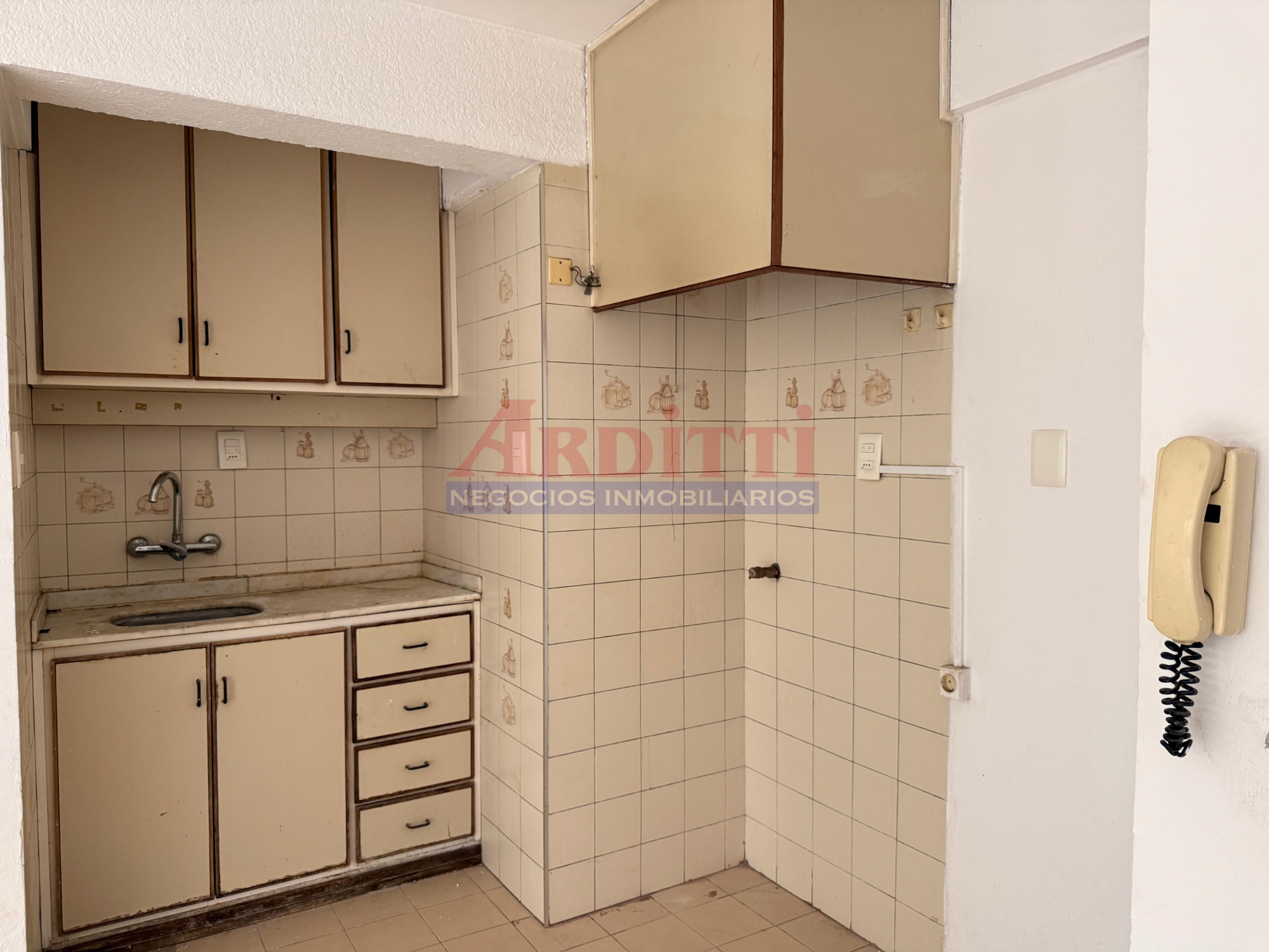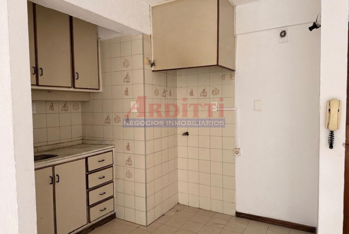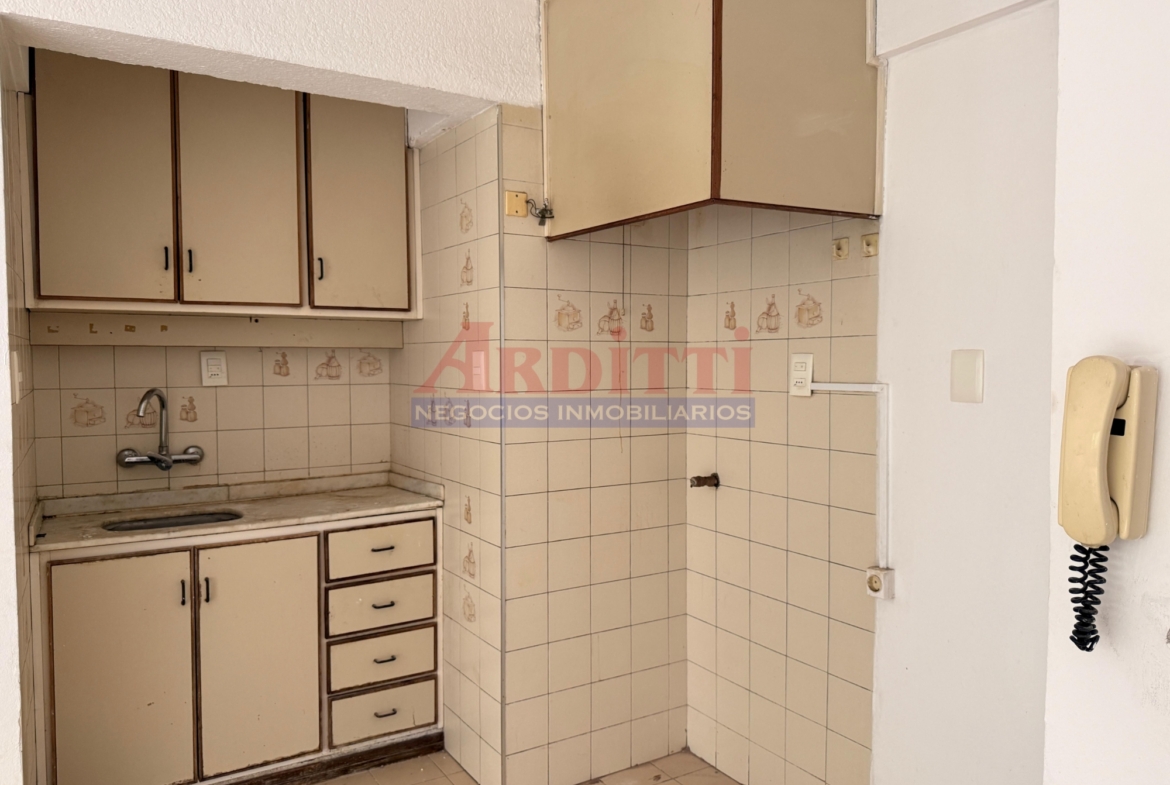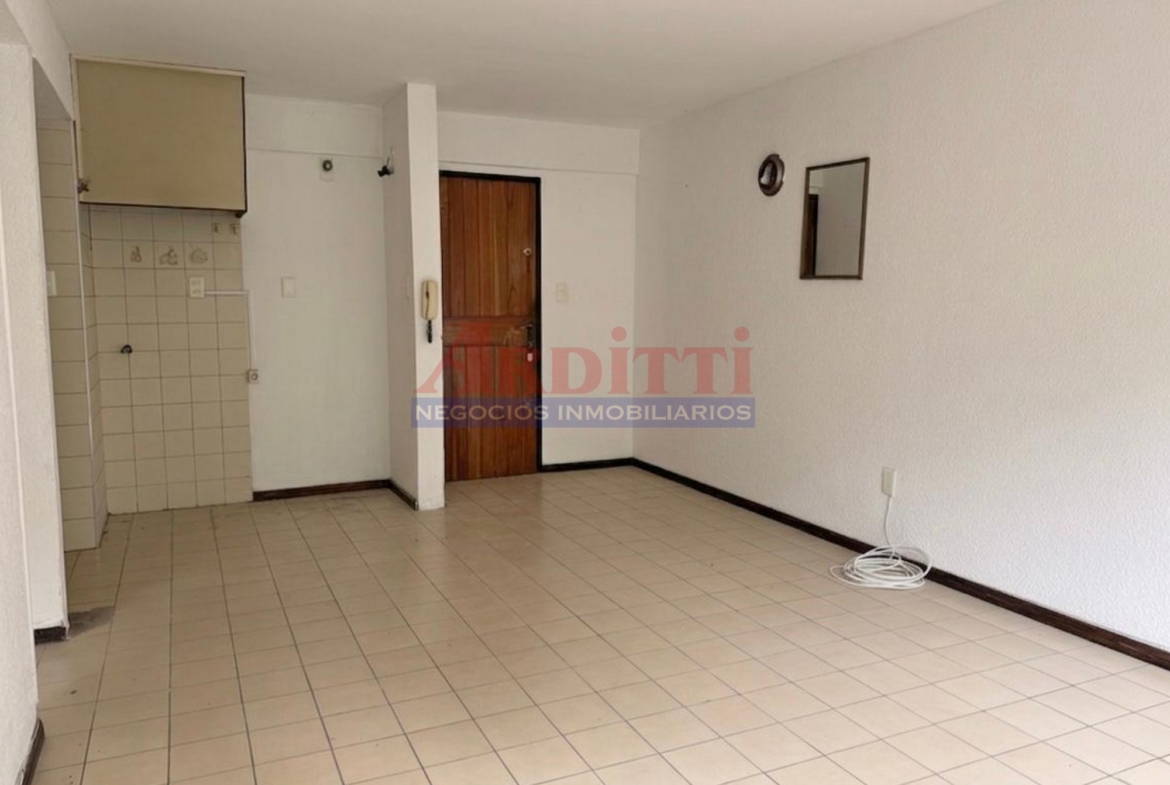 Living comedor con kitchenette integrada al ambiente con placares sobre y bajo mesada, 1 dormitorio con placard y baño. 40m²