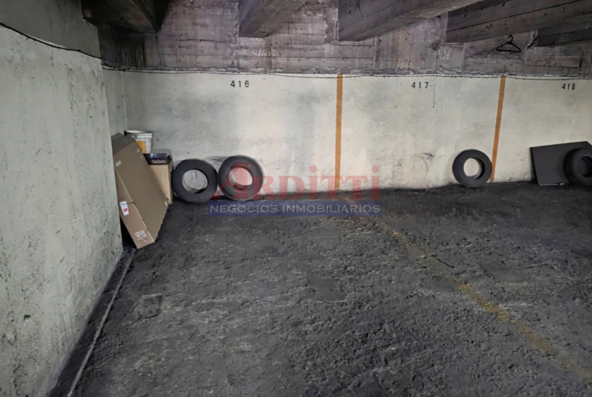 Living, comedor, 1 dormitorio, cocina definida, baño y garaje (en el mismo piso). 41 m²