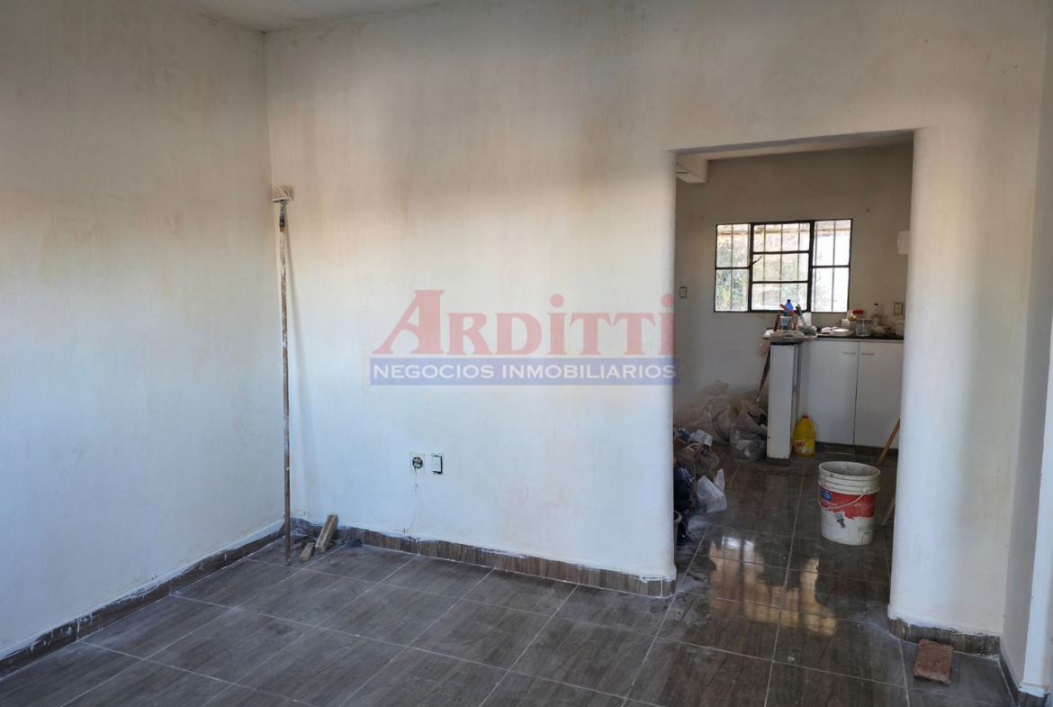 Jardín al frente, living comedor, 1 dormitorio, baño, cocina con comedor diario, fondo amplio con parrillero y lugar para auto.